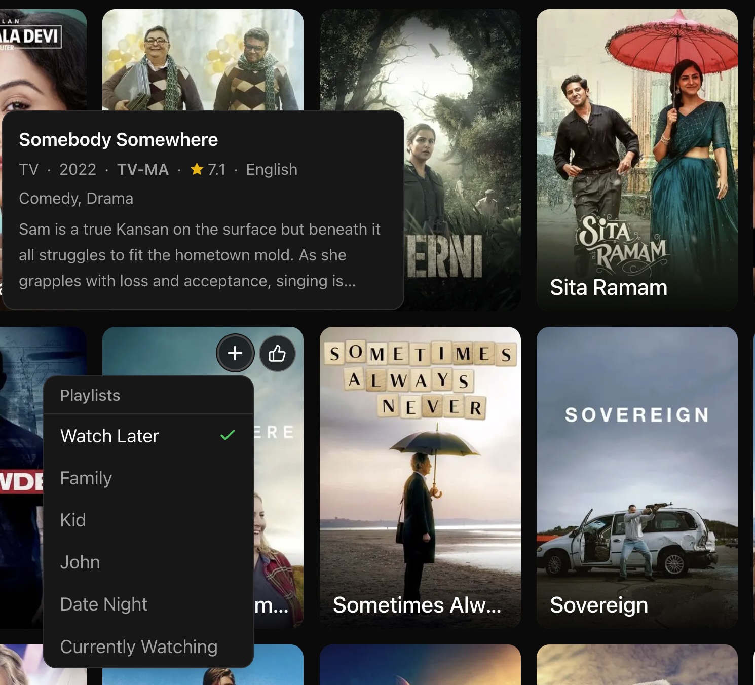 So that’s the lists and browsing. What about finding new things to watch? I can do that to some degree from the “More Like This” section in the title details. But I can also utilize the watch lists with the rest of the data to create a For You (well me really) feed.