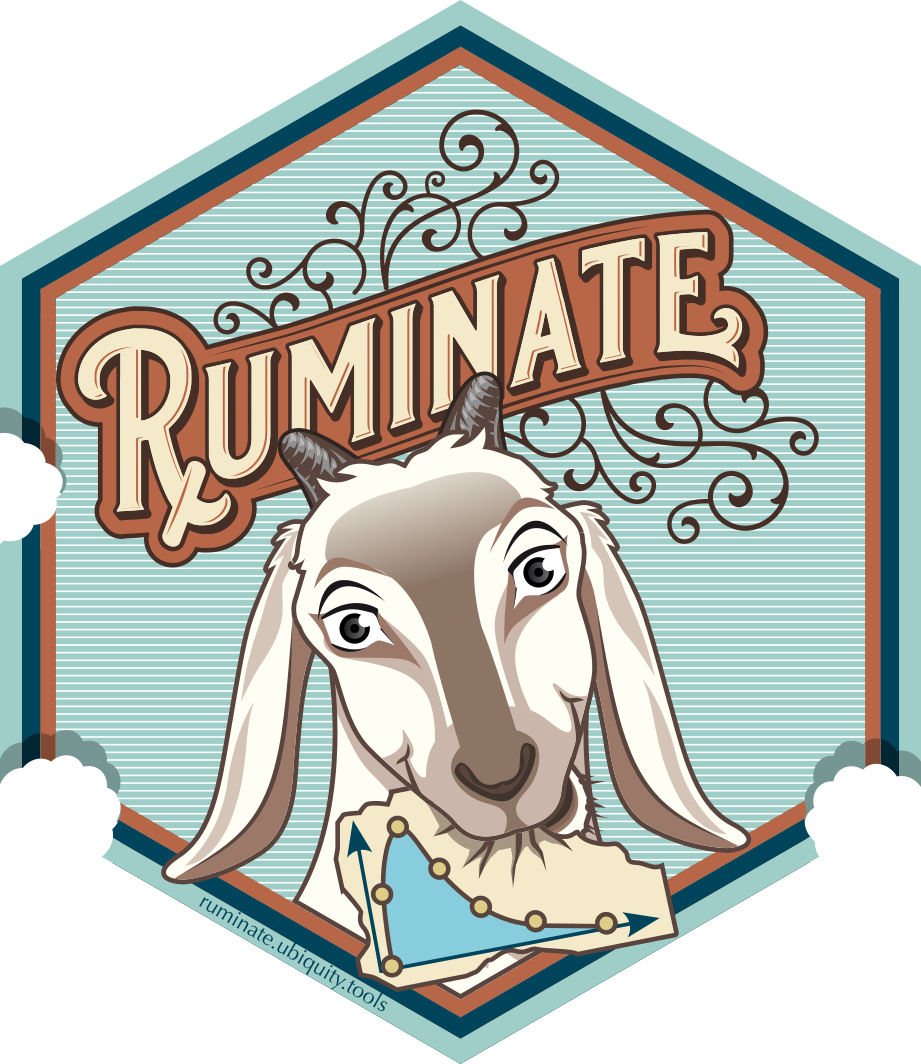 This ruminate package is an attempt to wrap commonly used pharmacometrics tools in shiny modules. The goal is to make these tools available to people who have limited programming experience. It generates code that users can use as a starting point for an analysis or to learn how to use a specic tool. Currently it has support for data wranling (dplyr, tidyr), figure generation (ggplot), non-compartmental analysis (PKNCA), and population simulations (rxode2). You can save and load your analysis, create workflows, generate reports (Word, PowerPoing and Excel) as well as generate a script to allow you go create validatable analyses independent of the app.